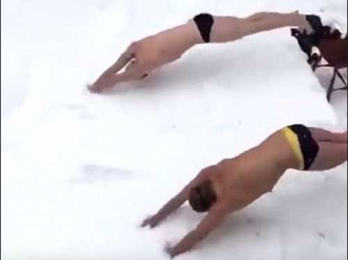 暴雪“喬納斯”席卷美國東海岸後,路麵積雪及腰深。不少人穿上泳衣,戴上護目鏡,一頭紮進雪堆中,加入“潛雪”熱潮。不少網友將“潛雪”視頻上傳至推特等社交網站,引來一片熱議。但外國網友普遍不讚賞此種行為,不少人表示“坐等脖子扭傷者”或者“愚蠢”。也有網友打趣道:“敢不敢待上30分鍾別回屋。”