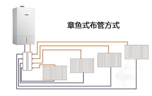 暗裝暖氣片采用的是章魚式連接方式。缺點是管道壞了不方便維修。管道埋在地板下麵,外觀上看起來幹淨、整潔。