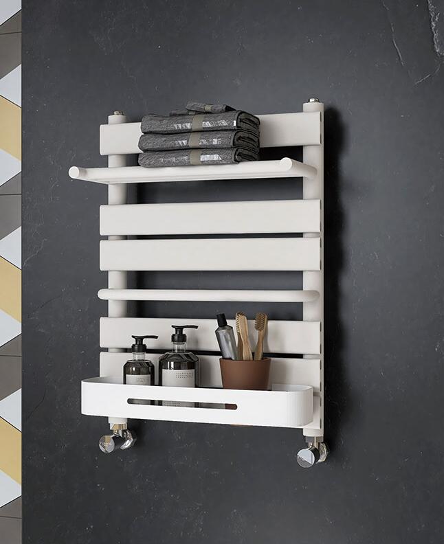 鑒於廚房有兩大特點,一是油煙大;二是雜物多。這就決定了廚房用暖氣片要好打理,便於清潔,很好兼具收納功能,因而可以選擇衛浴專用暖氣片,它體型小巧,幾乎不占用空間,表麵光滑細膩,不易結垢,容易打掃清潔,又兼具五金掛件的功能,可以放置一些廚房用品。